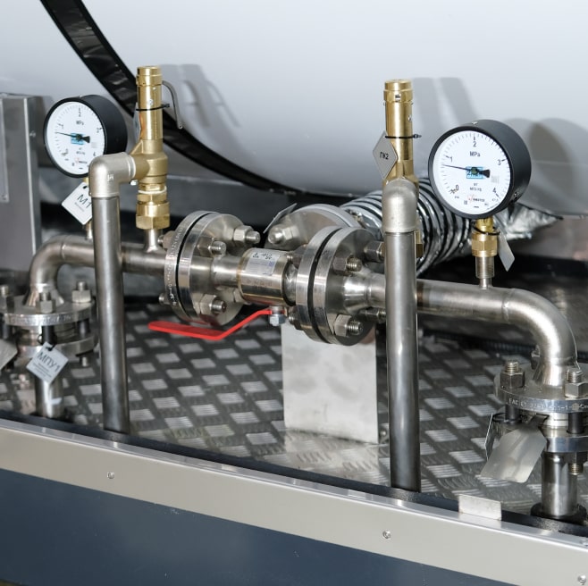 В контейнере-цистерне предусмотрена отдельная линия для подключения насосного агрегата. По вашему запросу мы можем установить насос для перелива жидкой двуокиси углерода двух типов: