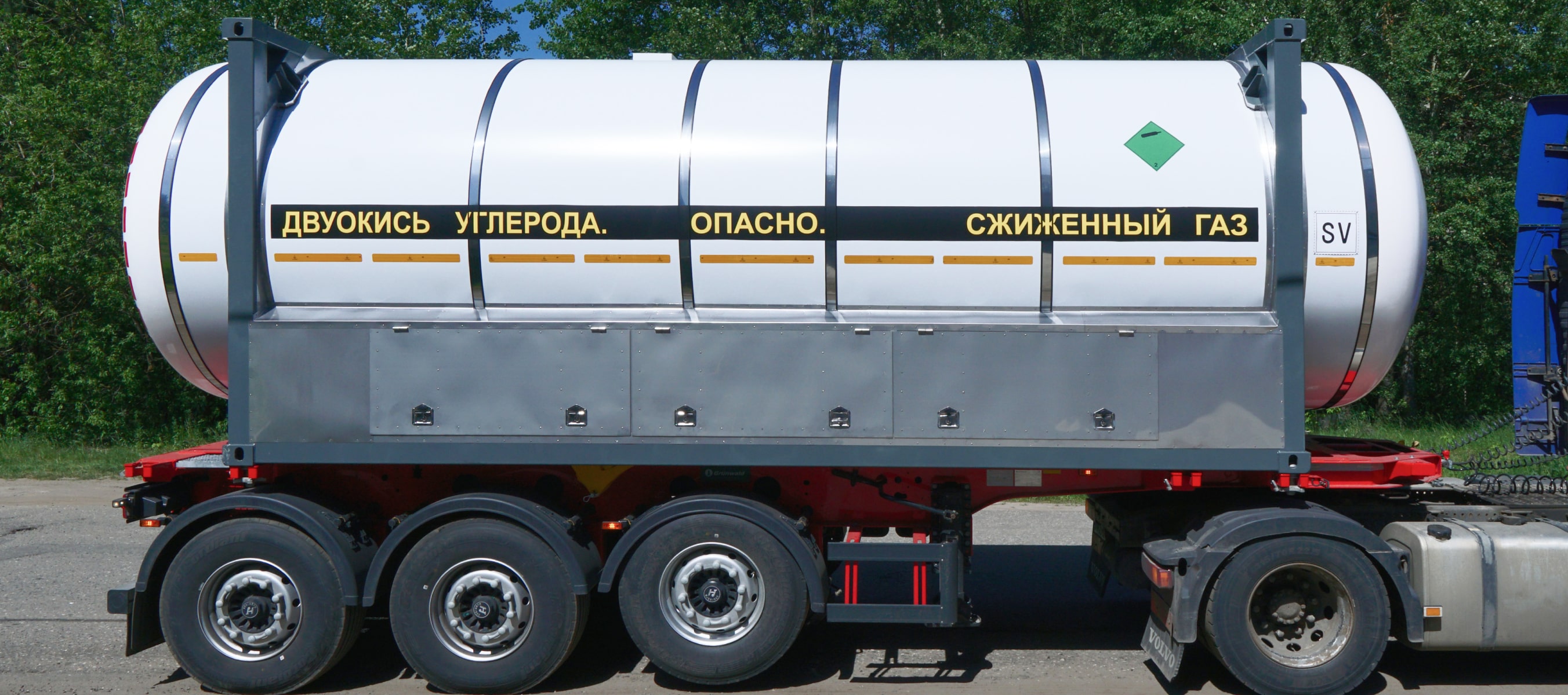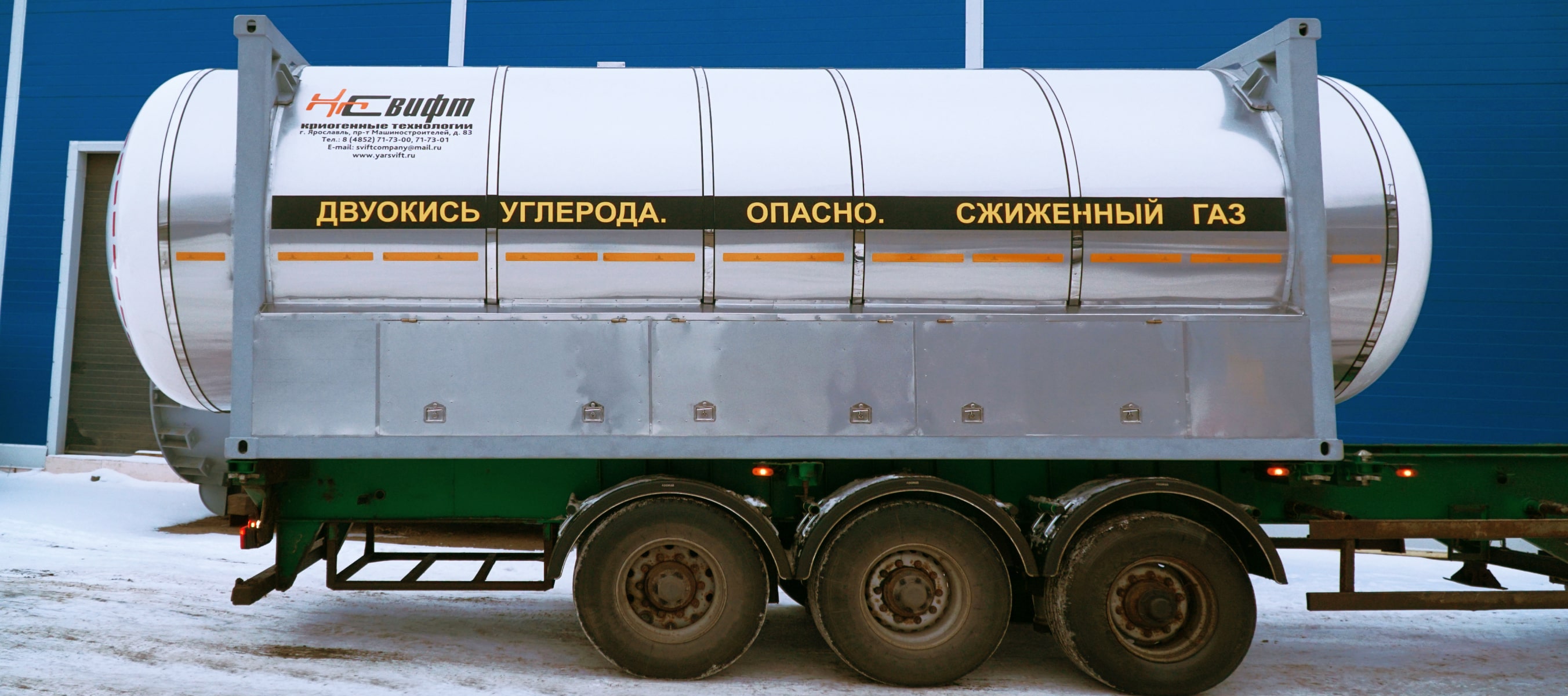 Контейнер-цистерна для транспортировки и хранения жидкой двуокиси углерода (КЦУ) - это изотермический резервуар, помещенный в стальной каркас со стандартными габаритами 20- или 40-футового контейнера.