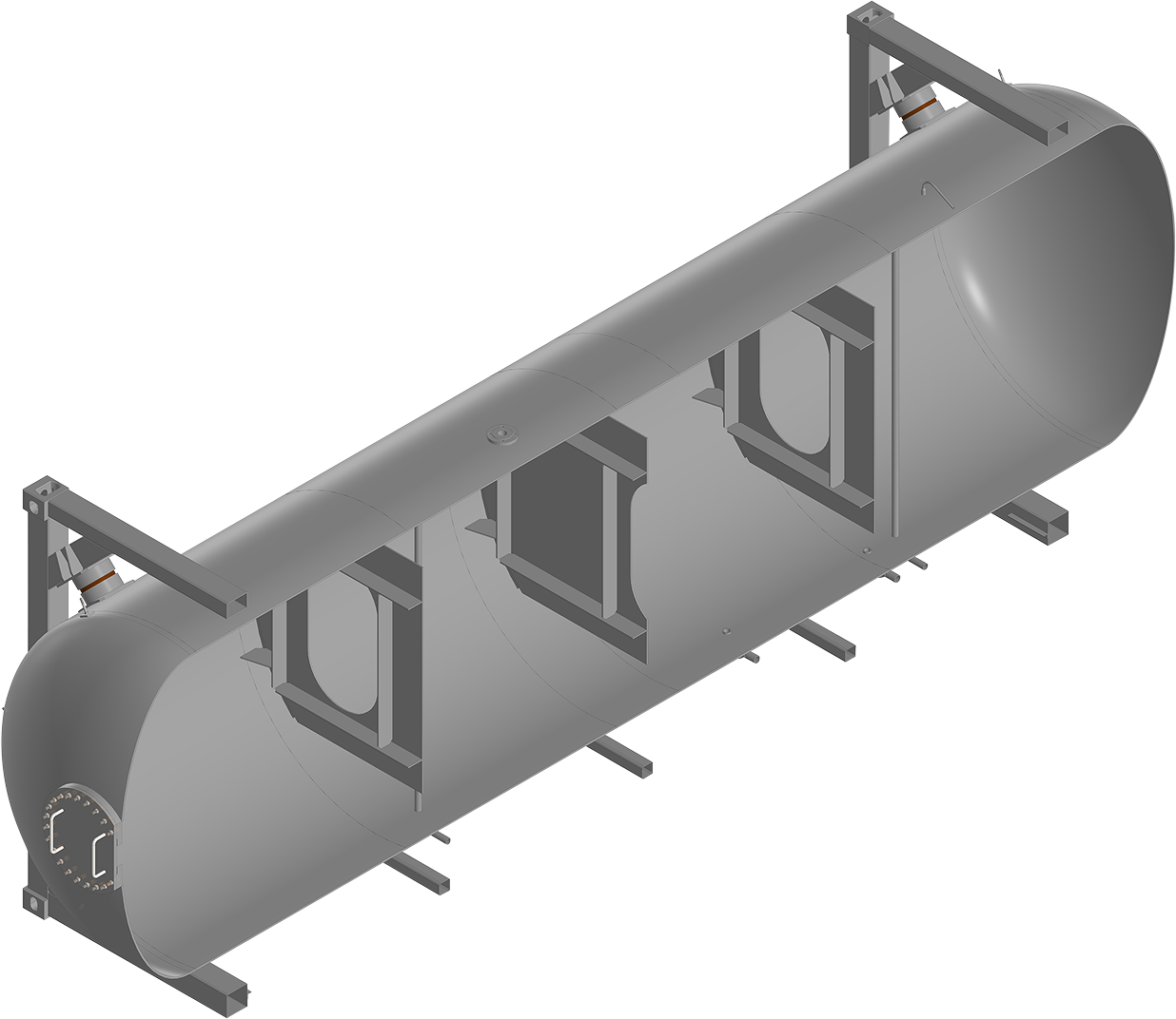 Цистерна имеет один отсек диаметром 1800 или 2000 мм в зависимости от выбранного объема резервуара, который разделен волногасящими устройствами (волнорезами).