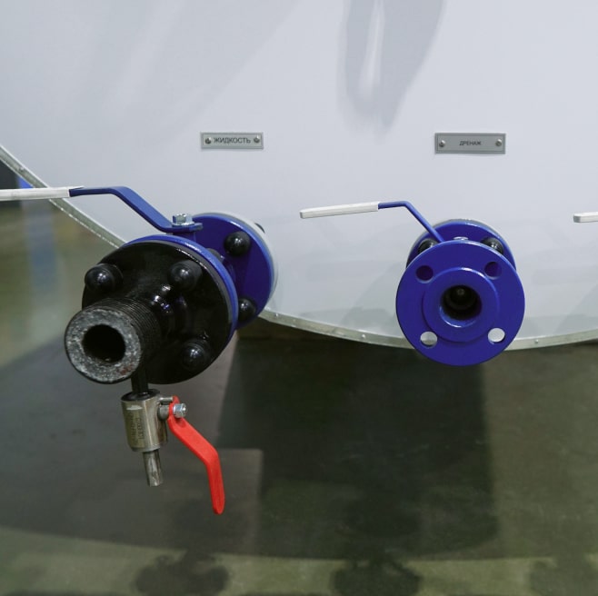 Вся запорная и переключающая арматура выполнена из низколегированной стали марки 09Г2С. По желанию заказчика может быть установлена арматура из нержавеющей стали.