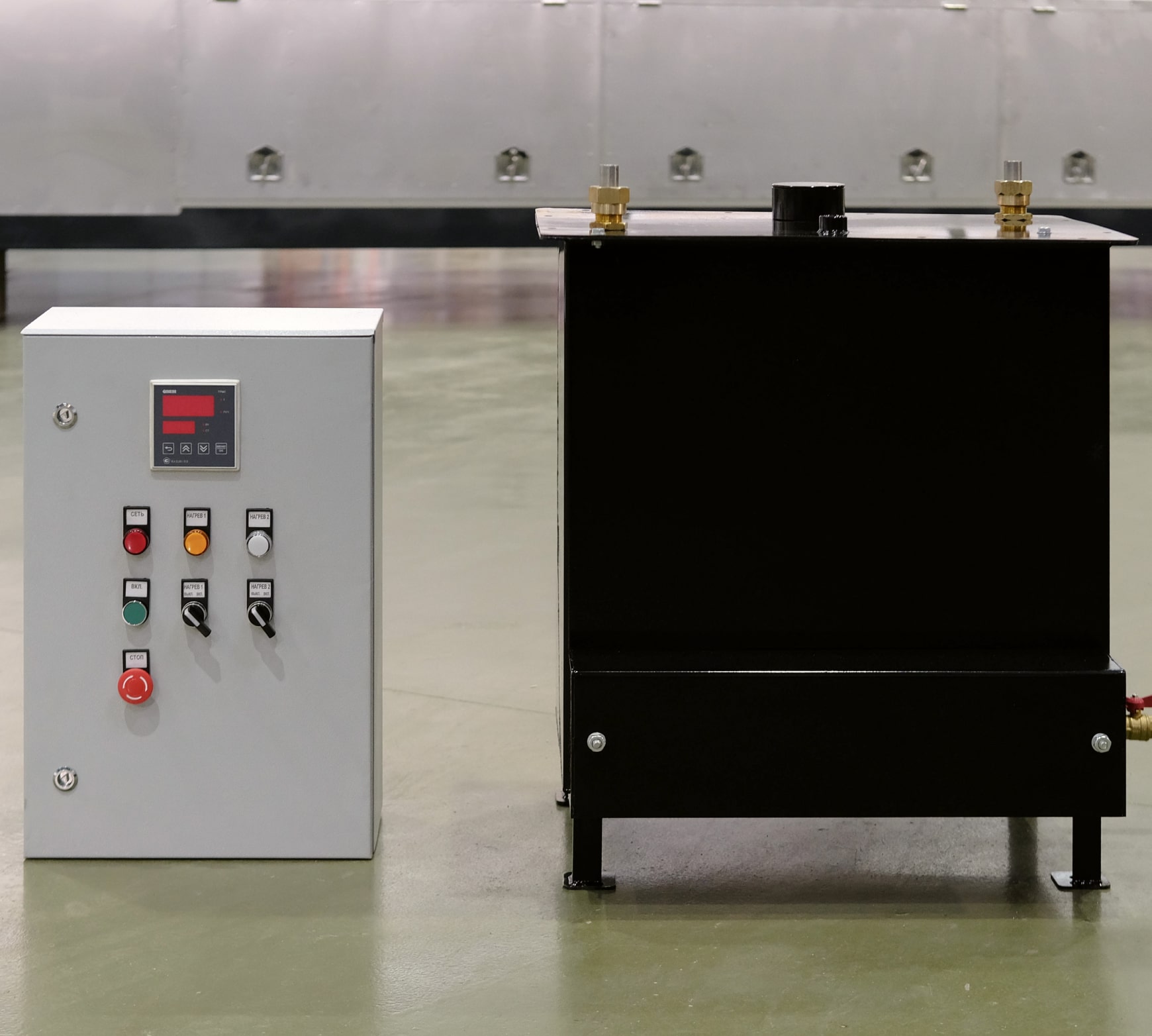 Представляет собой бак с установленным внутрь теплообменником и нагревательными элементами (ТЭНами).