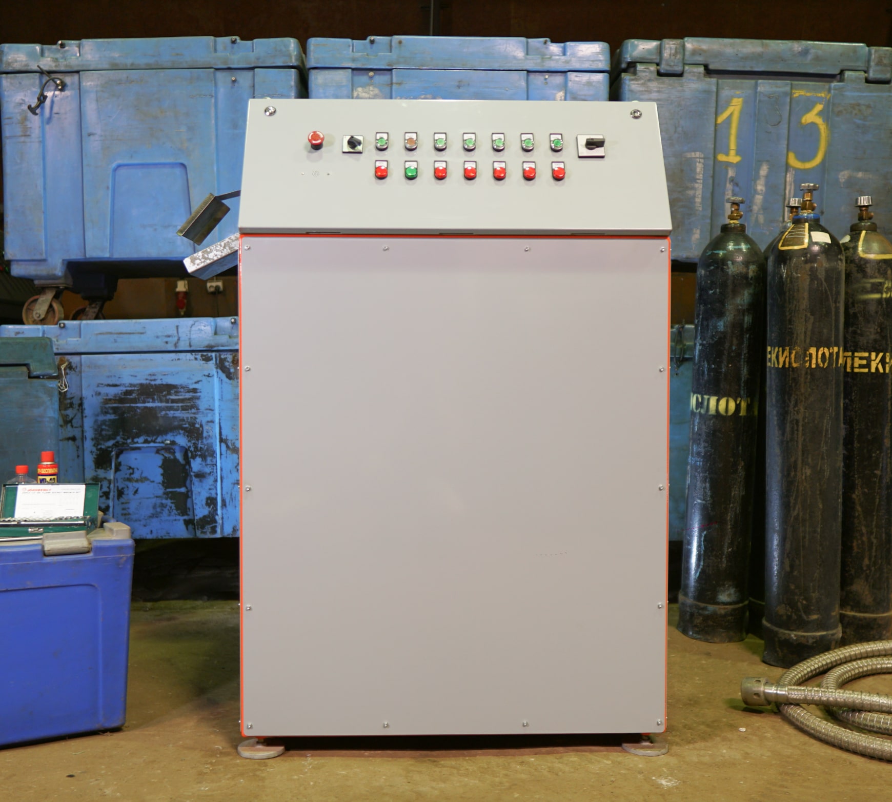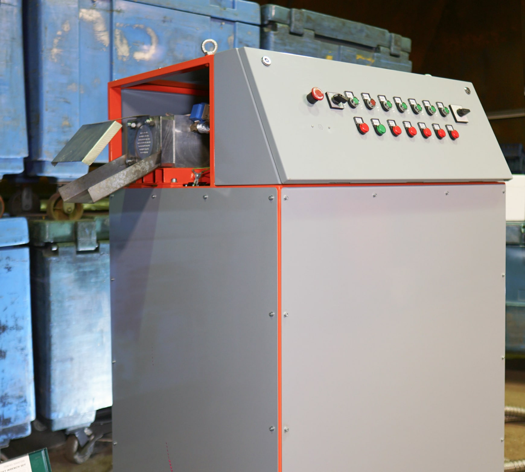 - Оборудование полностью автоматизировано и требует присутствия оператора только для запуска станка, его остановки и смены заполнившихся готовым продуктом контейнеров.