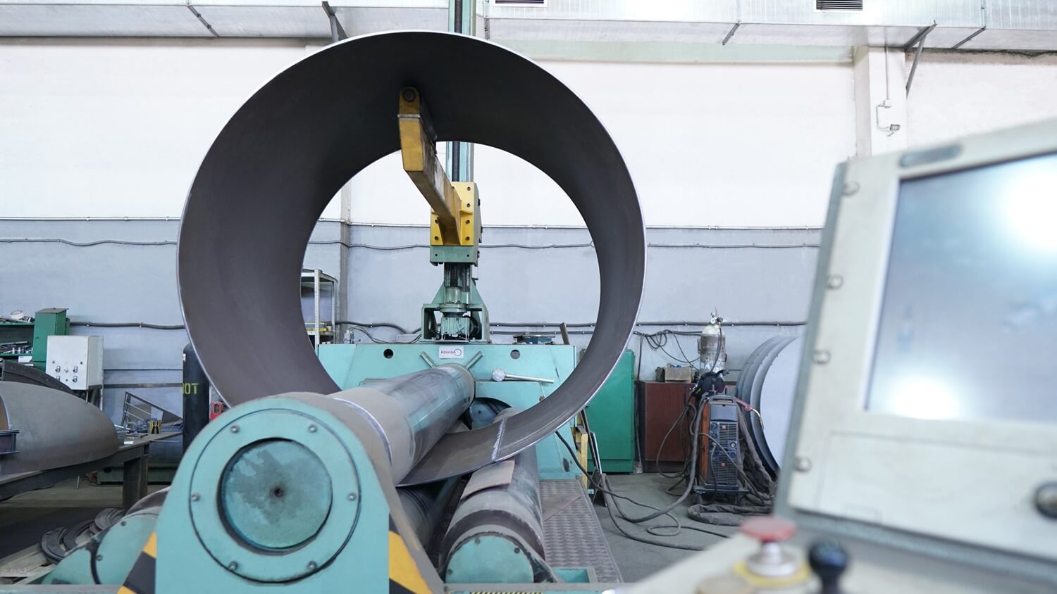 Наше предприятие оказывает услуги по вальцовке обечаек и других изделий на современной 4-валковой листогибочной машине шведского производства ROUNDO.